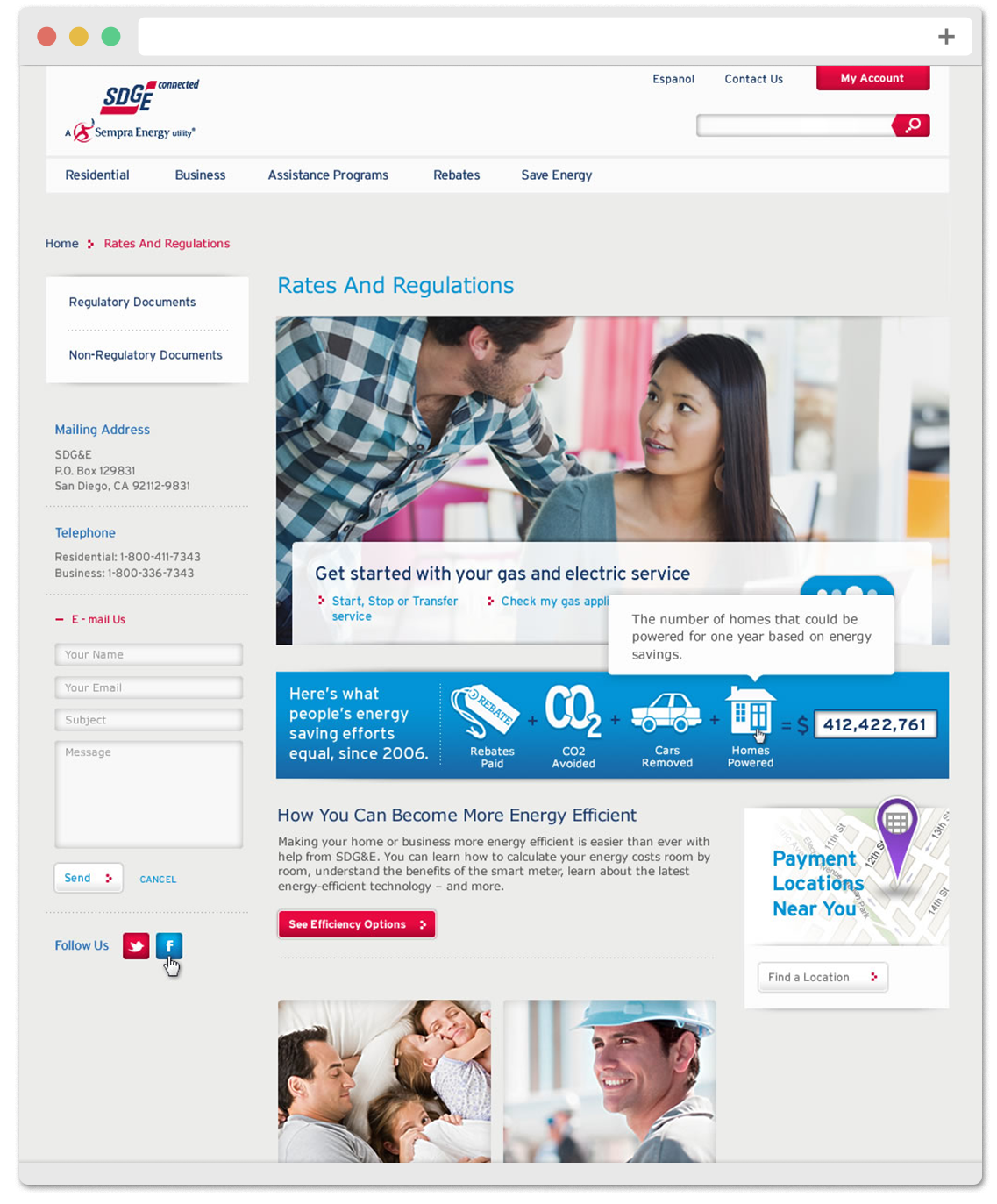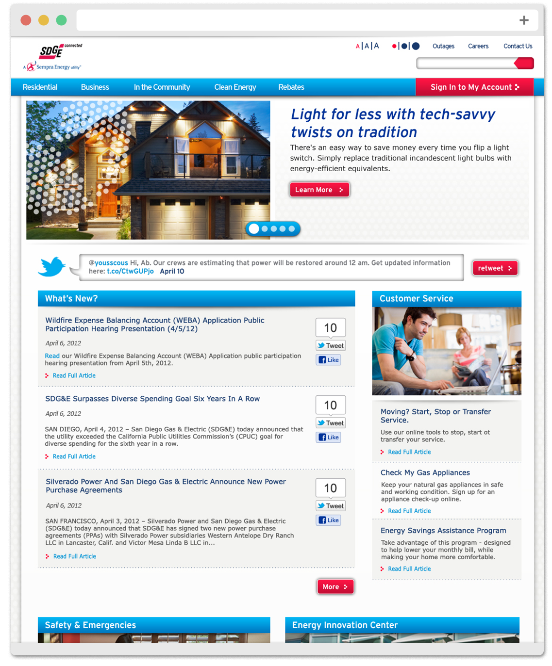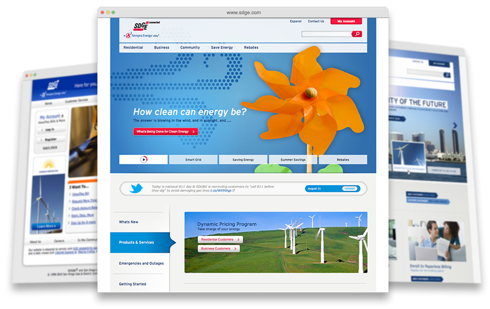 I was the lead interactive designer at San Diego Gas & Electric when we started redesigning their website in 2011. It was a major undertaking with thousands of pages of content and strict regulatory standards to meet. The results redefined industry standards for web design.